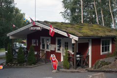 Am nächsten Morgen werden an der Rezeption Brötchen gekauft und dann lecker gefrühstückt. Anschließend ist wieder Einpacken angesagt. (Die Routine schleicht sich so langsam rein) und los geht es - ab jetzt immer auf der E4 Richtung Stockholm - auf den bereits gebuchten Campingplatz Flottsbro. Auf der Fahrt kommt der erste richtige Regen auf und dann die ersten Staus, denn die Schweden können das Reißverschlußverfahren in den letzten Metern irgendwie nicht, obwohl sie das ständig üben können. Die Straße ist nämlich immer in eine Richtung zweispurig und in die andere einspurig und das wechselt alle 4-5 km.