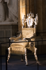 Zurück am Wohnmobil müssen wir die Kinder wecken und dann wird erst mal gefrühstückt. Drei von uns müssen noch unter die Dusche duschen, Steven hat das bereits um Mitternacht erledigt. Dann startet das Abenteuer Stockholm, mit dem Bus nach Huddinge und dann weiter mit der S-Bahn nach Stockholm Hauptbahnhof, ab da sind Schusters Rappen angesagt. Auf geht es mit ein paar kleinen Umwegen, da unsere Handys den Standort nicht genau bestimmen können, zum königlichen Schloß mitten in der historischen Stockholmer Altstadt. Dort erstehen wir dann ein paar Tickets und begeben uns ohne Führung auf den langen Gang durch die Gemäuer. Zum ersten Mal erleben wir ein Schloß von innen, dass tatsächlich noch von König und Königin genutzt wird. Als erstes bekommen wir den Thron und die Empfangsräume für die offiziellen Anlässe zu sehen. Fotos zeigen uns dann auch immer wieder, wie diese Räume dann gestaltet sind, was ich schon sehr beeindruckend finde.
