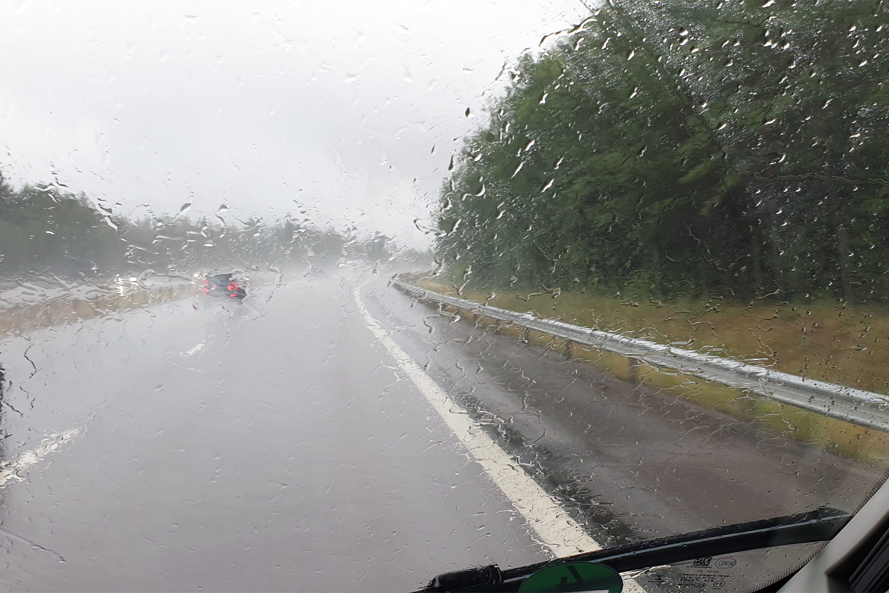 Am nächsten Morgen werden an der Rezeption Brötchen gekauft und dann lecker gefrühstückt. Anschließend ist wieder Einpacken angesagt. (Die Routine schleicht sich so langsam rein) und los geht es - ab jetzt immer auf der E4 Richtung Stockholm - auf den bereits gebuchten Campingplatz Flottsbro. Auf der Fahrt kommt der erste richtige Regen auf und dann die ersten Staus, denn die Schweden können das Reißverschlußverfahren in den letzten Metern irgendwie nicht, obwohl sie das ständig üben können. Die Straße ist nämlich immer in eine Richtung zweispurig und in die andere einspurig und das wechselt alle 4-5 km.