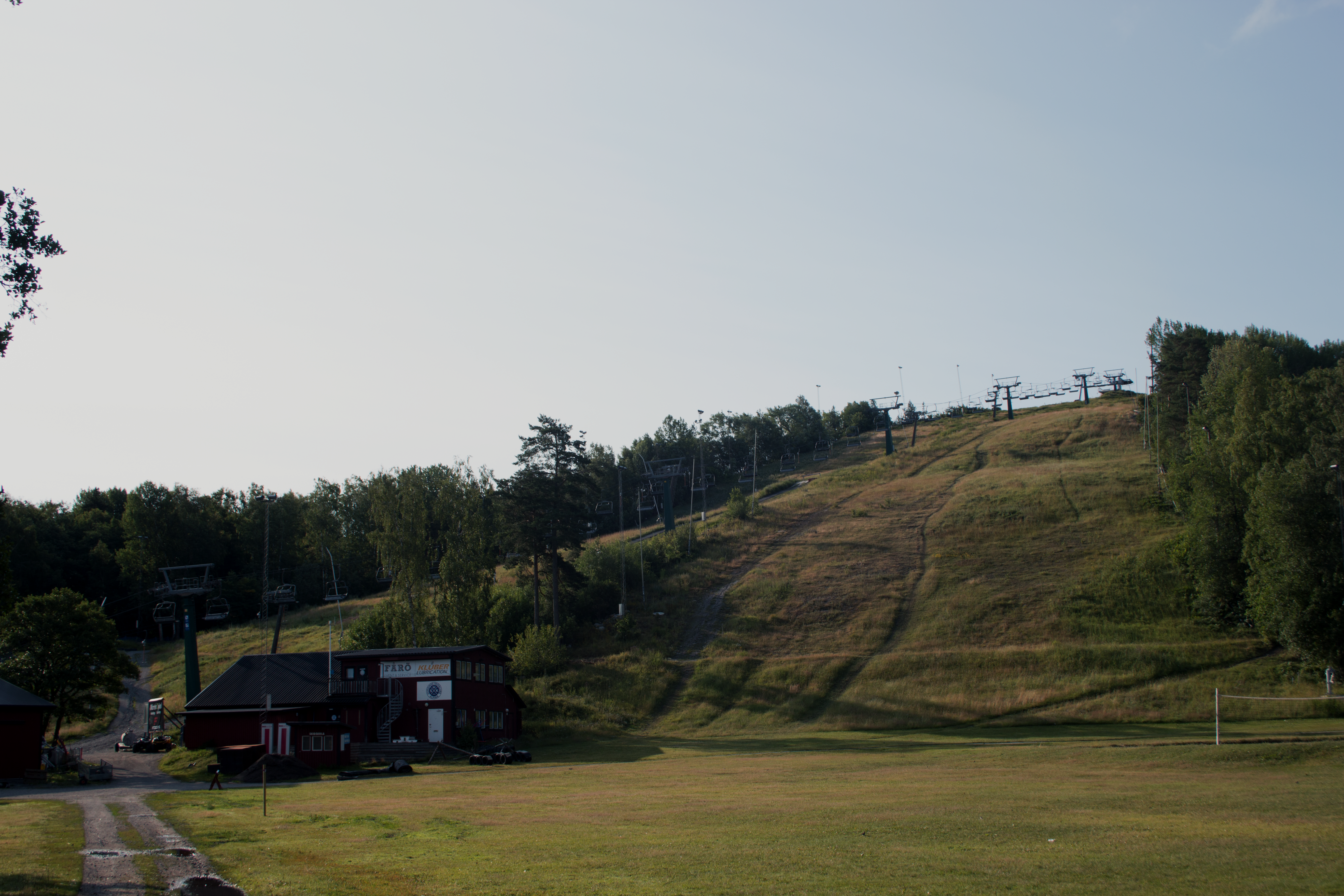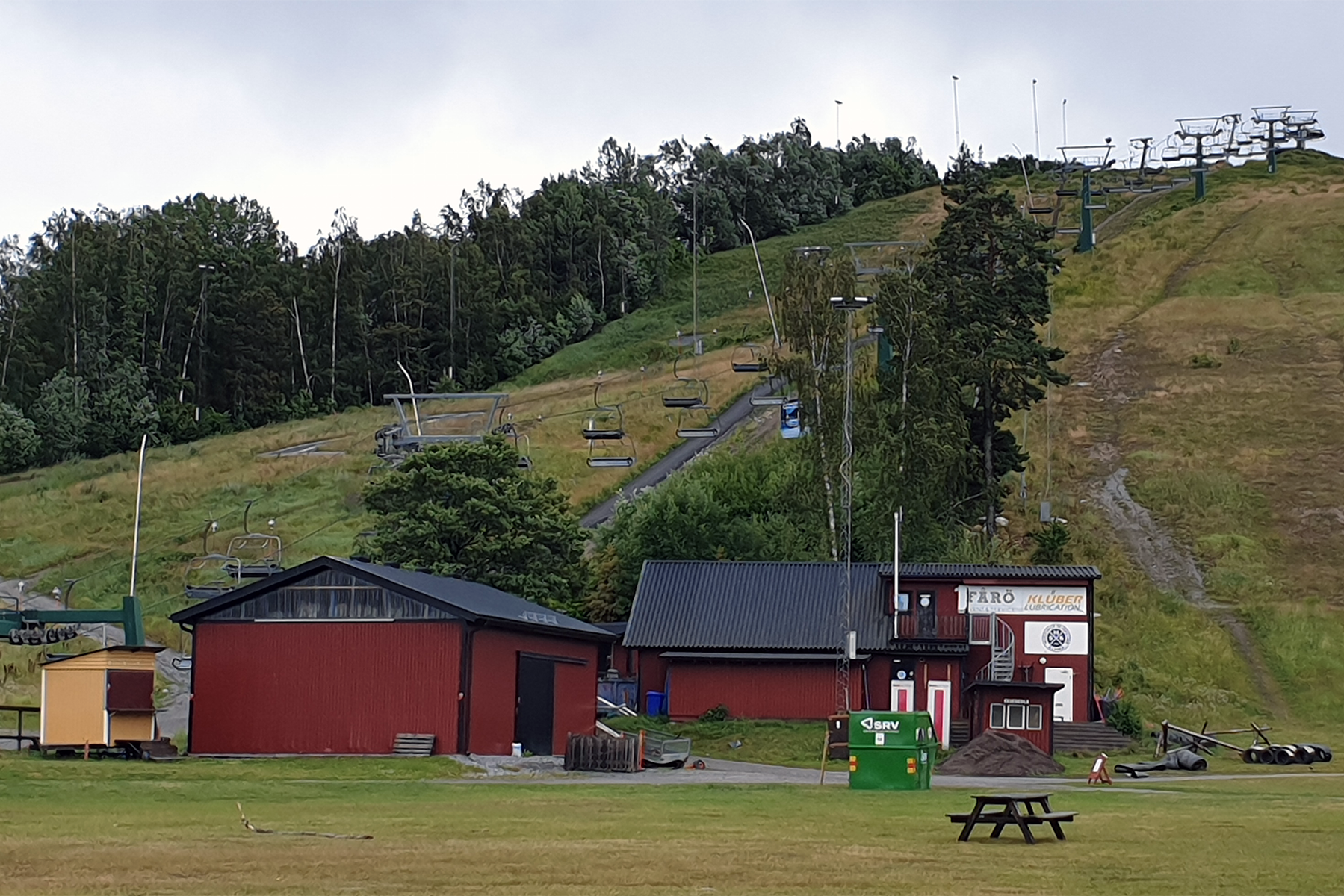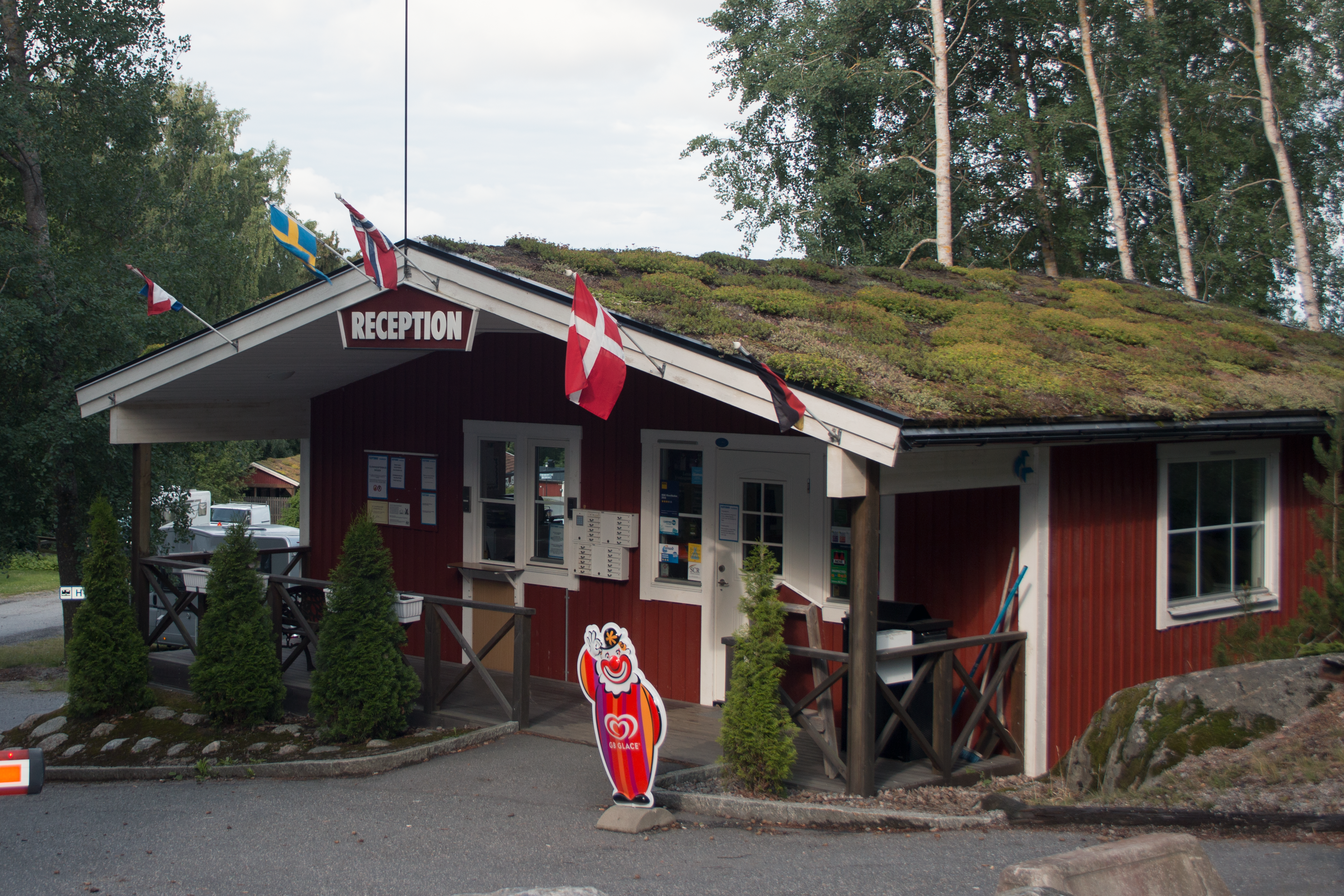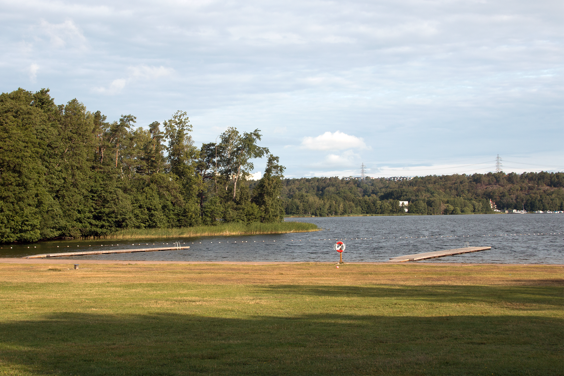 Irgendwann müssen wir wegen Stau die Autobahn verlassen und kämpfen uns durch die südlichen Vororte von Stockholm Richtung Huddinge durch und dann geht es nach Flottsbro zu einem kleinen gemütlichen Campingplatz im Wald. Erst wird alles wieder aufgebaut incl. Abspannung (Unwetterwarnung für Stockholm und Umgebung für die kommende Nacht) und dann machen Marcel, Bine & André einen Erkundungsgang. Wir finden tatsächlich ein Skigebiet, welches quasi am Strand endet. Die Unwetterwarnung für Stockholm und Umgebung findet irgendwie nicht statt oder zumindest an anderer Stelle, bei uns in Flottsbro gibt es nur ein bisserl Regen. Nach dem Abendessen spülen Marcel und André erstmalig in einer vorhandenen Spülküche und nicht im Wohnmobil.