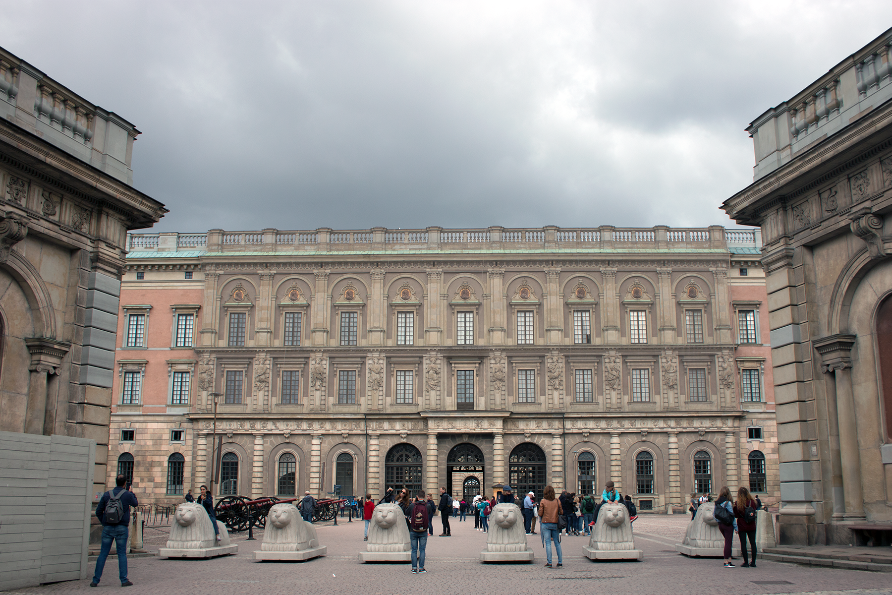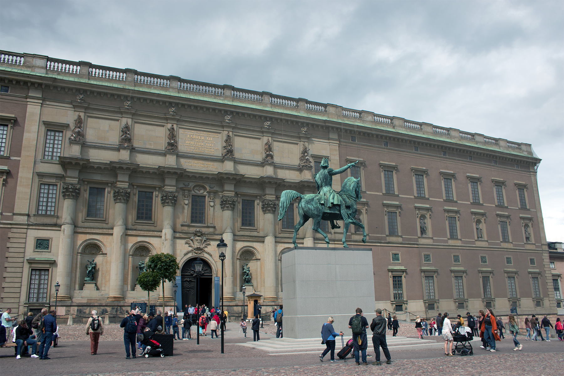 Zurück am Wohnmobil müssen wir die Kinder wecken und dann wird erst mal gefrühstückt. Drei von uns müssen noch unter die Dusche duschen, Steven hat das bereits um Mitternacht erledigt. Dann startet das Abenteuer Stockholm, mit dem Bus nach Huddinge und dann weiter mit der S-Bahn nach Stockholm Hauptbahnhof, ab da sind Schusters Rappen angesagt. Auf geht es mit ein paar kleinen Umwegen, da unsere Handys den Standort nicht genau bestimmen können, zum königlichen Schloß mitten in der historischen Stockholmer Altstadt. Dort erstehen wir dann ein paar Tickets und begeben uns ohne Führung auf den langen Gang durch die Gemäuer. Zum ersten Mal erleben wir ein Schloß von innen, dass tatsächlich noch von König und Königin genutzt wird. Als erstes bekommen wir den Thron und die Empfangsräume für die offiziellen Anlässe zu sehen. Fotos zeigen uns dann auch immer wieder, wie diese Räume dann gestaltet sind, was ich schon sehr beeindruckend finde.